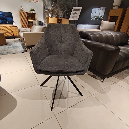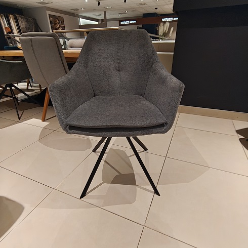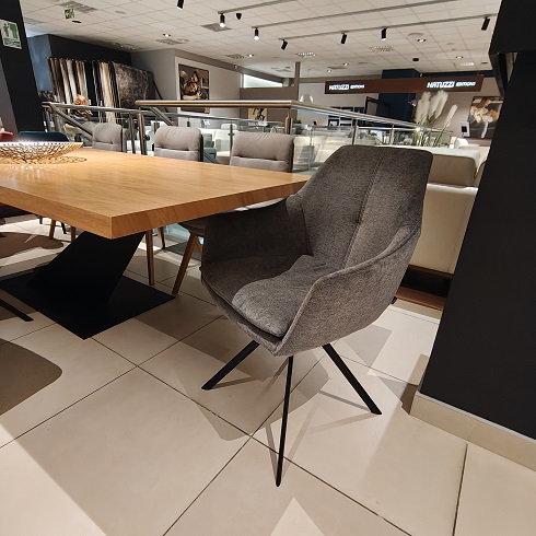 Krzesła posiadają obrotowe siedzisko i tkaninę łatwą w czyszczeniu.